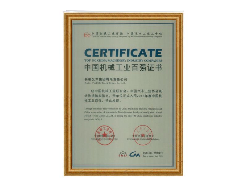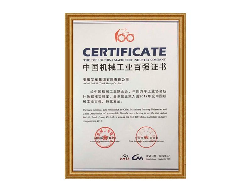 2020中國機械工業(yè)百強證書