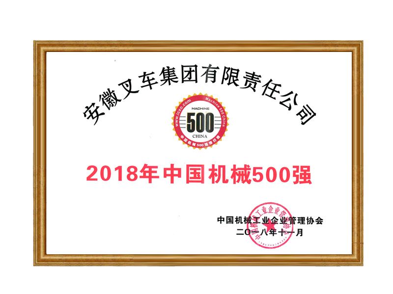 2018安徽叉車集團有限責任公司2018年中國機械500強